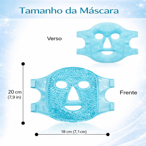 Uso Gelado: Coloque a máscara na geladeira e verifique até chegar na temperatura desejada, garantindo que não chegue a temperaturas muito baixas para não lesionar a pele. Coloque a parte de tecido primeiro para evitar o choque da temperatura na região e, após se adaptar a temperatura, aplique o lado de gel no rosto. O tempo de uso é d 5 a 10 minutos.